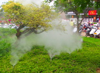 噴霧系統運用的案例含噴霧消毒、人造霧景觀、噴霧除臭、除塵等。
